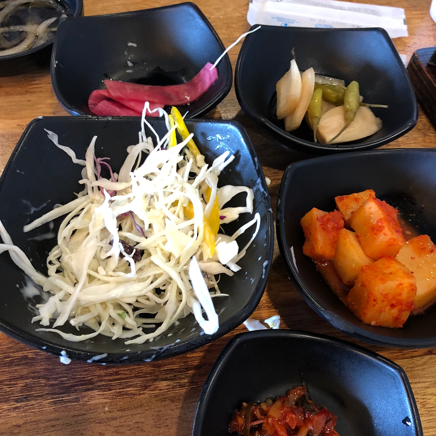 밑반찬들이 나오고, 어느덧 냉면들이 나옵니다.